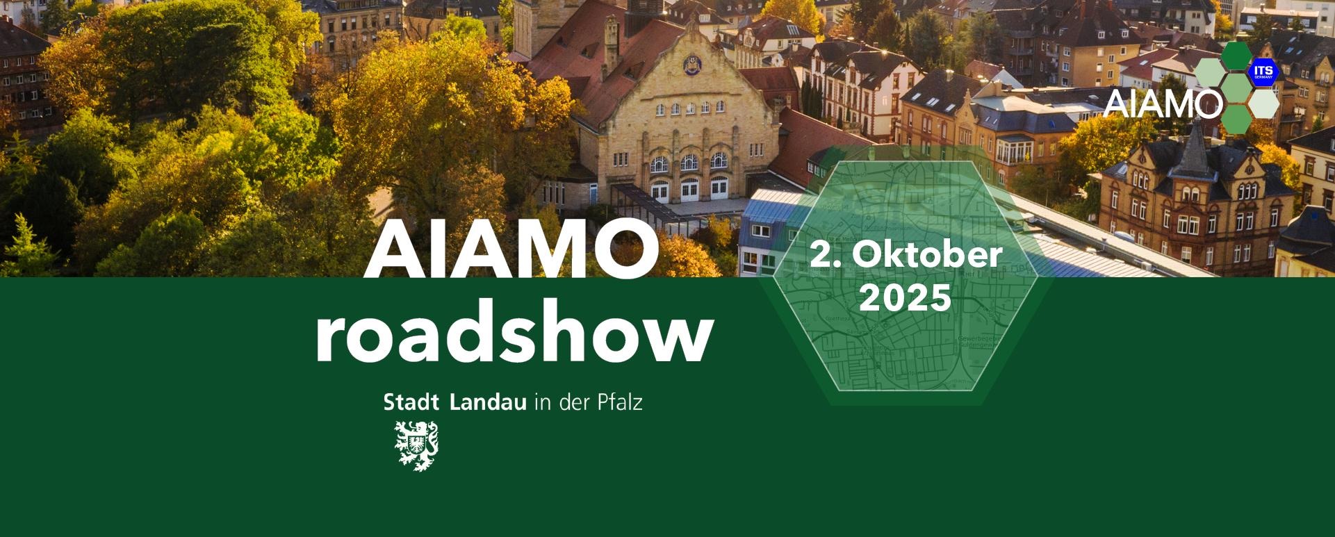 Der ITS Germany e.V. lädt zusammen mit der Stadt Landau zur AIAMOroadshow ein. Am 02. Oktober 2025 startet die Pilotregion Landau in der Pfalz offiziell in die operative Erprobungsphase von AIAMO – Artificial Intelligence and MObility.